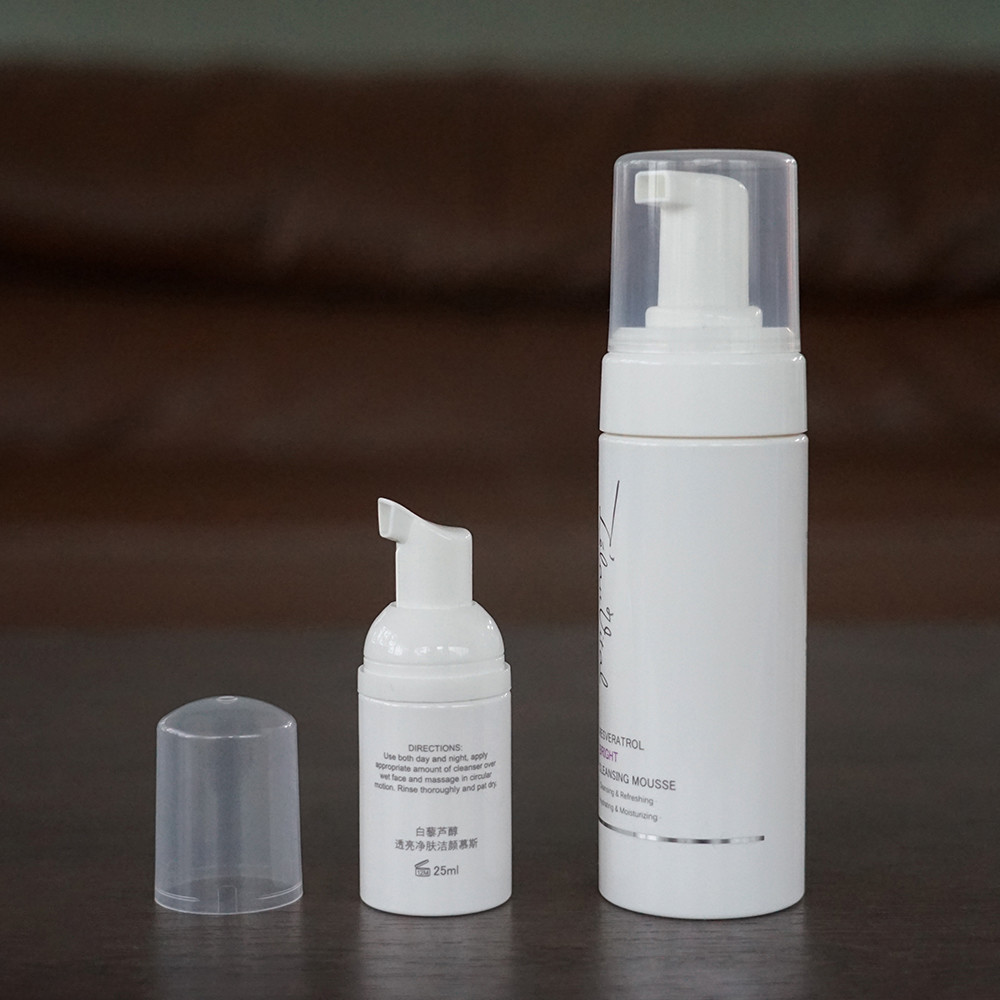 150 میلی لیتر 25 میلی لیتر تمیز کننده صورت سیلندر آرایشی سفید PET بطری پمپ پلاستیکی فوم